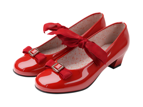 Elegant red female shoes walking confidently through streets
