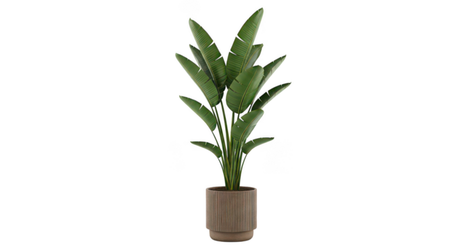 Isolated Exotic Bird of Paradise Plant in White Ceramic Pot