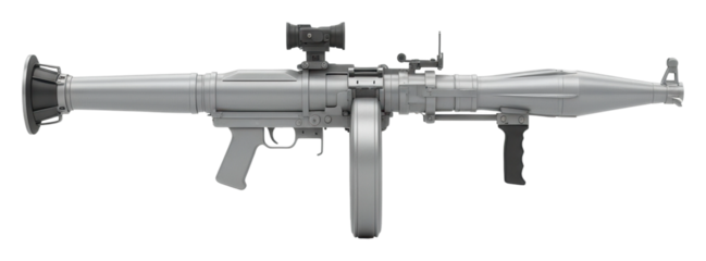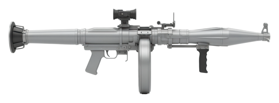 Military action weapon armory product showcase industrial side view isolated on transparent background