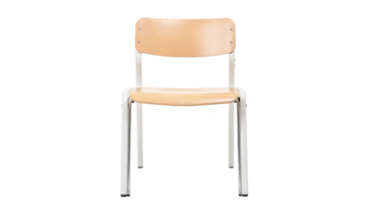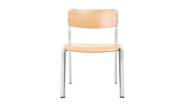 Single chair isolated on white background symbolizing basic seating used in physical therapy for strength and endurance tests. Closeup of simple wooden chair on white background