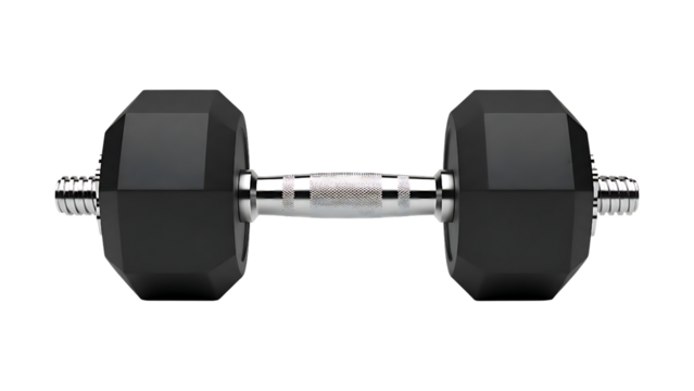 Heavy duty hexagonal rubber dumbbell with chrome handle for strength training and fitness workouts