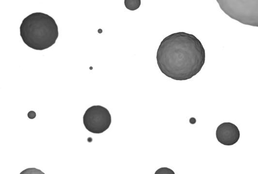 Microscopic gray bacteria with pili revealing complex cellular structures, magnified against transparent backdrop