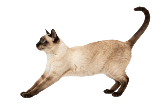 Isolated Graceful Siamese Cat Stretching