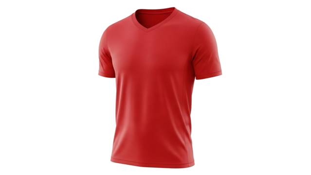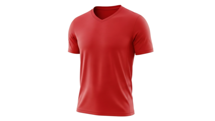 A red V-neck T-shirt on a black background for fashion or apparel design