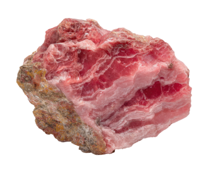 Close-up of a raw, pink, mineral specimen.  Jagged edges, striated texture