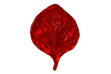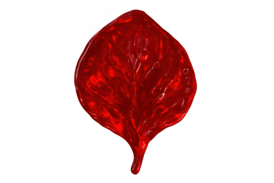 Glossy red jelly leaf glistening, transparent backdrop highlighting vibrant texture, delivering striking visual impact