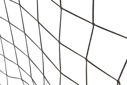 Soccer ball in soccer goal net . Close-up textured soccer net on soccer goal isolated on free PNG Background.