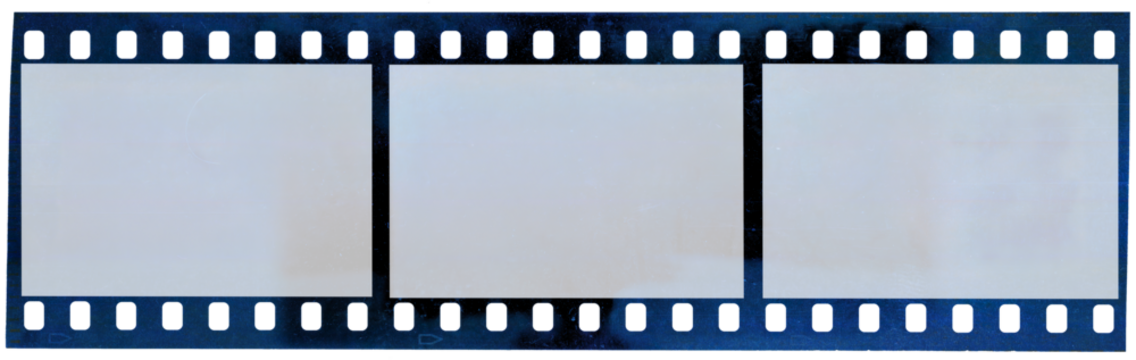 long 35mm film strip isolated with blue scanning light error, png asset, film photo placeholder.