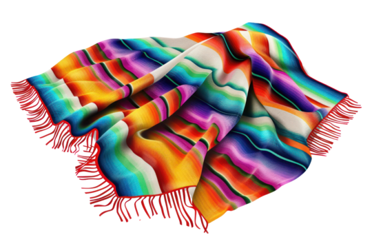 Colorful striped mexican blanket isolated on transparent background