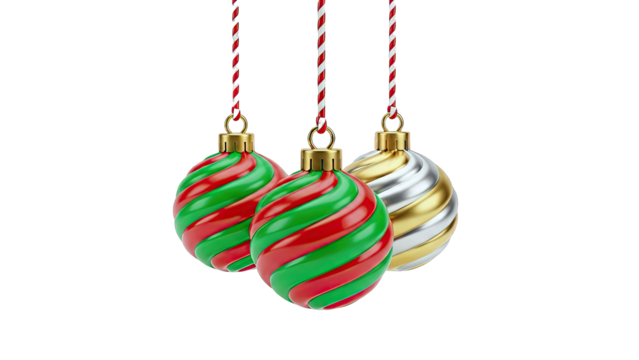 Christmas Ornaments with Red, Green, Gold, and Silver Swirls