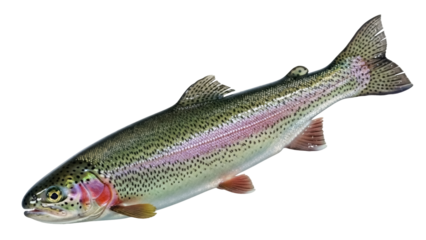 Rainbow trout isolated PNG, freshwater fish with colorful iridescent stripe for fishing and aquaculture themes on transparent background