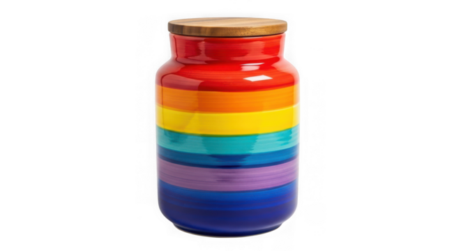 Rainbow striped jar with wooden lid isolated on transparent background