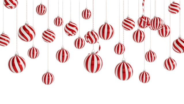 Red and white striped ornaments hanging