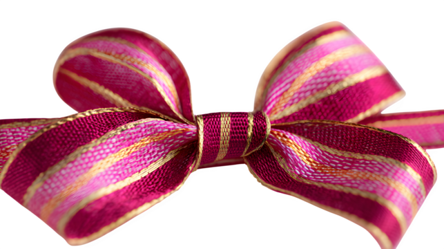 Pink and gold striped ribbon bow isolated on transparent background