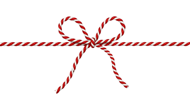 Festive red and white striped bow made of twisted rope, holiday decoration.