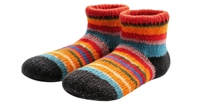 Colorful hand-knit socks perfect for cozy evenings in winter