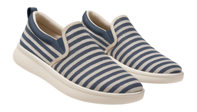 Striped fabric slip-ons with a lightweight sole and padded collar