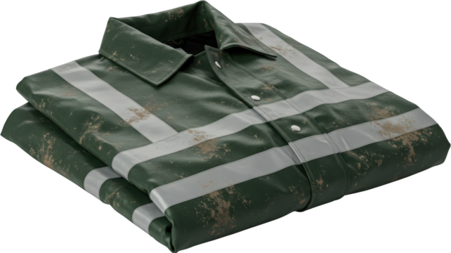 Folded Workwear Jacket Green Reflective Stripes Dirty Construction Apparel