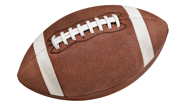 American football PNG isolated on transparent background, brown leather ball with white stripes for sports and game design