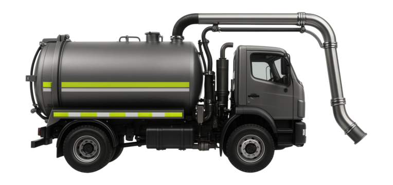 Reflective safety striping along the sides of a municipal vacuum truck