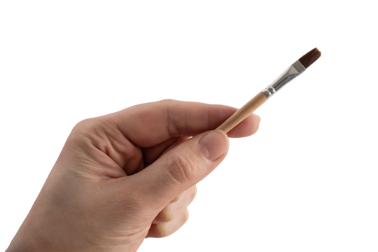 hand holding a flat paintbrush ready to create an artwork . Isolated on transparent background, png