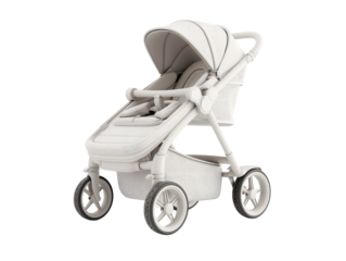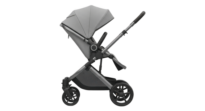 Minimalist baby stroller on transparent background for versatile design