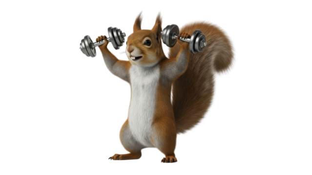 Squirrel Lifting Dumbbells isolated PNG with Transparent Background