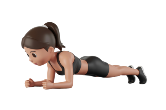 Transparent fitness woman holding plank position