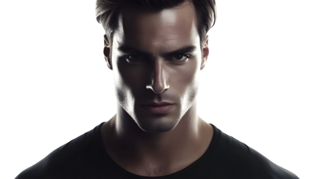 Intense Portrait of a Man with Dramatic Lighting and Strong Features