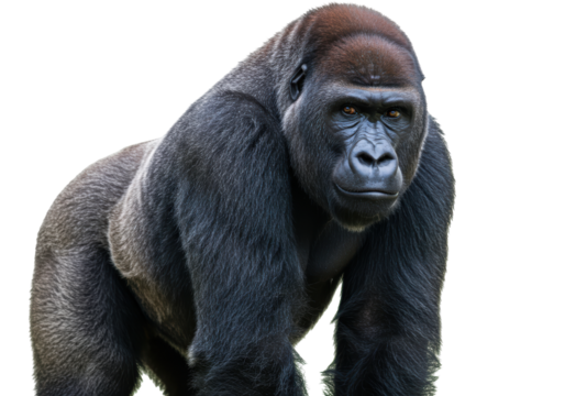 Majestic Gorilla Portrait with Intense Gaze Against a White Background, cut out transparent