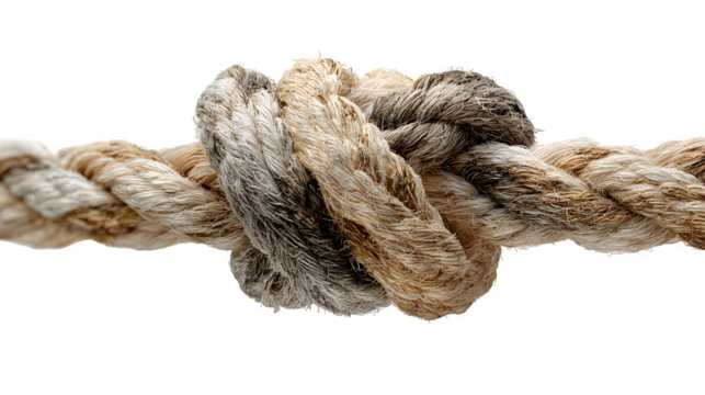 knot tied in a rope isolated on white background, HD realistic