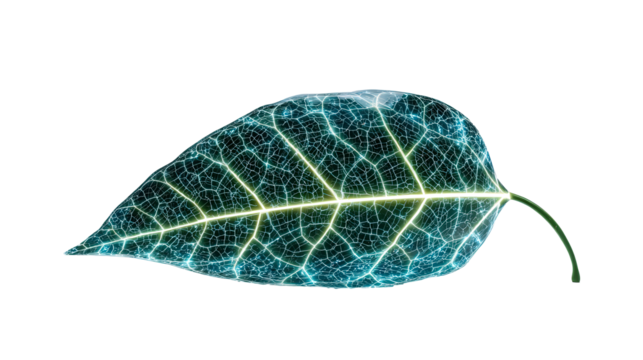 Leaf Veins: A vibrant close-up captures a detailed leaf, highlighting its intricate vein structure against a minimalist background, evoking a sense of natural complexity and botanical detail.