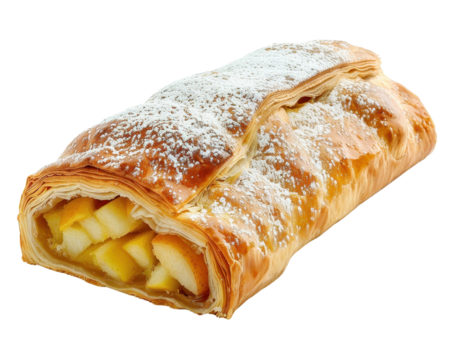 Apple strudel with powder , isolated on transparent background, png
