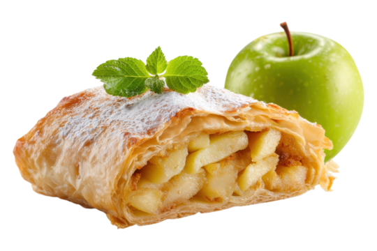 Apple strudel isolated on transparent or white background