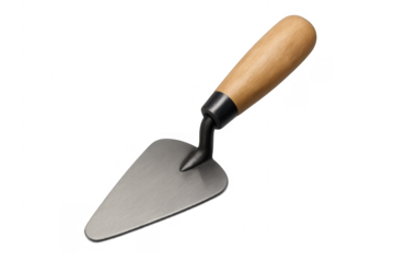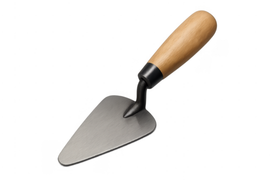 Construction trowel with a blue and orange grip, building tool ready for masonry, bricklaying, and plastering work