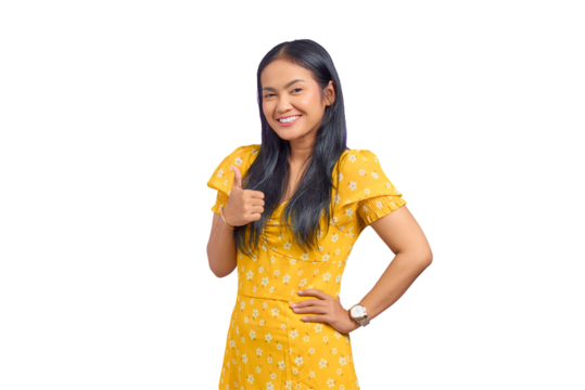 Portrait of smiling young asian college student wearing red almamater isolated on white background