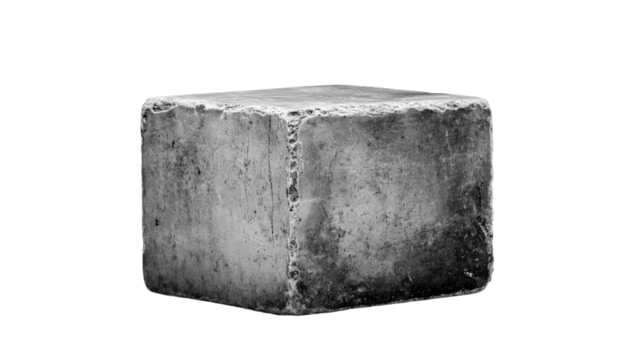 Transparent solid gray cement block on white background
