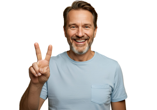 Thoughtful businessman with beard gesturing ok sign on transparent background