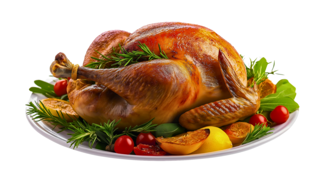 Delicious roasted turkey isolated on transparent background
