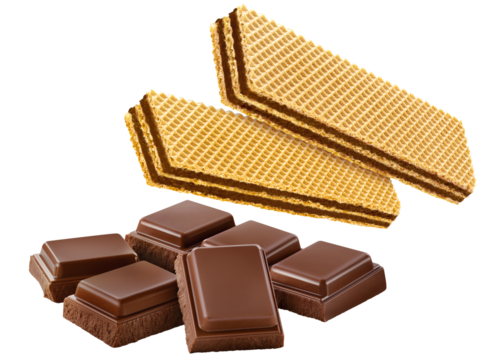 biscoito wafer de chocolate acompanhado de barra de chocolate ao leite isolado em fundo transparente