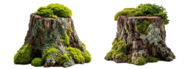 Set of stumps with moss isolated on a transparent background.