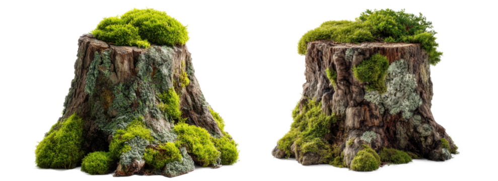 tree stump with moss and lichen isolated on transparent background
