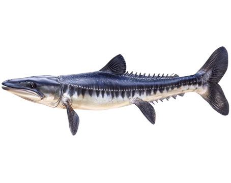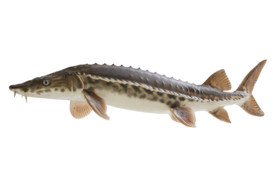 A transparent PNG of a Siberian sturgeon (Acipenserbaerii), a long-bodied, bottom-dwelling fish with spiny, bony plates along its back
