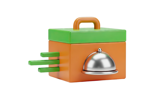 3D Render of a stylized delivery box with a bell and green rods