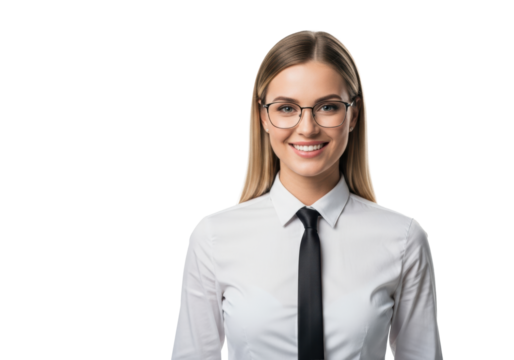 Confident smiling businesswoman with blonde hair on transparent background