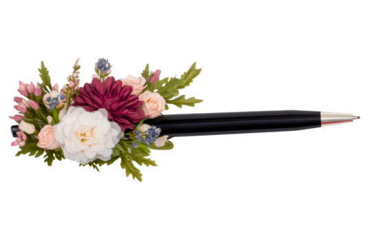 Elegant Pen with Floral Corsage, Cut Out Transparent