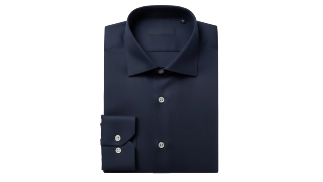 Folded dark blue dress shirt isolated PNG, formal wear for men on transparent background, elegant apparel for business or special occasions
