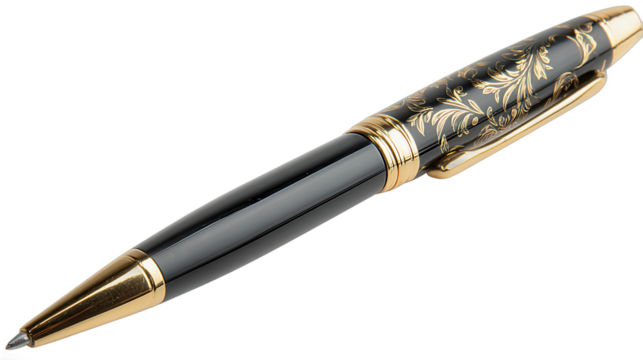Elegant black and gold pen with intricate designs suitable for writing and gifting