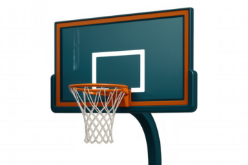 3d rendering of a basketball hoop featuring net and backboard against a transparent background, perfect for sports-related designs