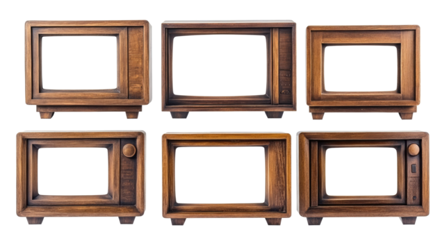 Vintage Wooden Television Sets With Empty Screens Arranged Stylishly Generative AI
